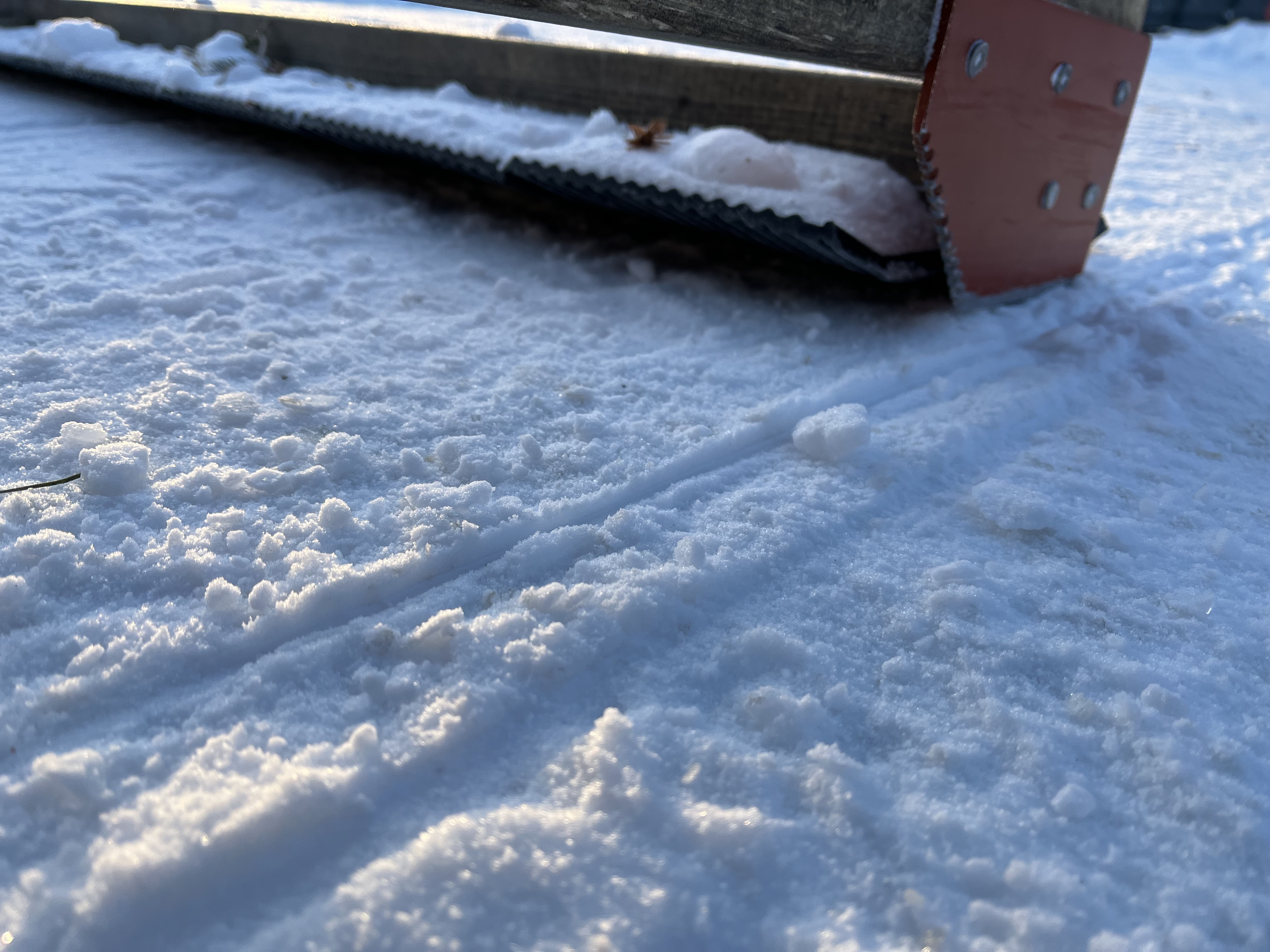 Kladdplatta baktill som pressar ihop snön som gör den hårdare